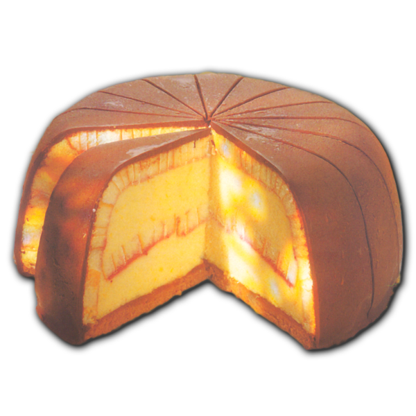 Diese Torte wurde dem großen Franzosen und Feinschmecker Anthelm-Brillat Savarin gewidmet. Frisch pürierte, sonnengereifte Pfirsiche, Sahne und viel Champagner werden von einem zarten Biskuit-Mantel umhüllt, der – mit feiner Zartbitterschokolade überzogen – diese edle Komposition ergibt. Wir empfehlen Ihnen, die Torte halbgefroren als Sorbet zu servieren. So schmeckt sie besonders prickelnd und erfrischend.